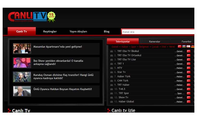 Canlı tv izleme sitesine hoşgeldiniz hd kalitesi ile bütün kanalları ve yayınları ücretsiz seyret, canlıtvtürk diyenlerin mekanı!